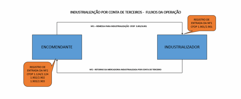 Observações A industrialização por conta de terceiros é quando o encomendante (autor da encomenda) remete insumos para serem industrializados por sua conta e ordem em terceiros.